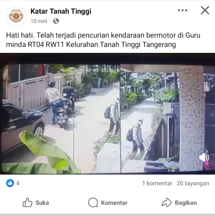 Diduga Terjadi Pencurian Kendaraan Bermotor Roda Dua Di Wilayah Kelurahan Tanah Tinggi Kota Tangerang