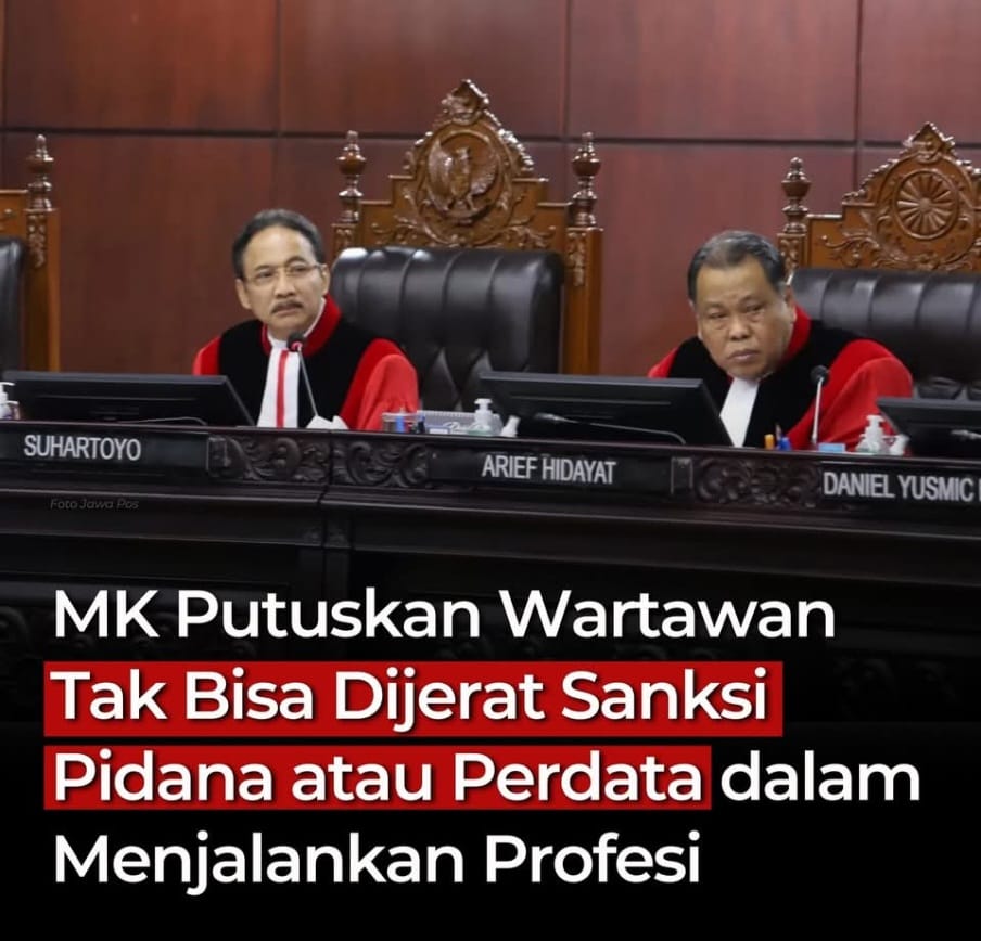 Mahkamah Konstitusi : Wartawan Tidak Bisa Di Jerat Sanksi Pidana Atau Perdata Dalam MenjalankanProfesi