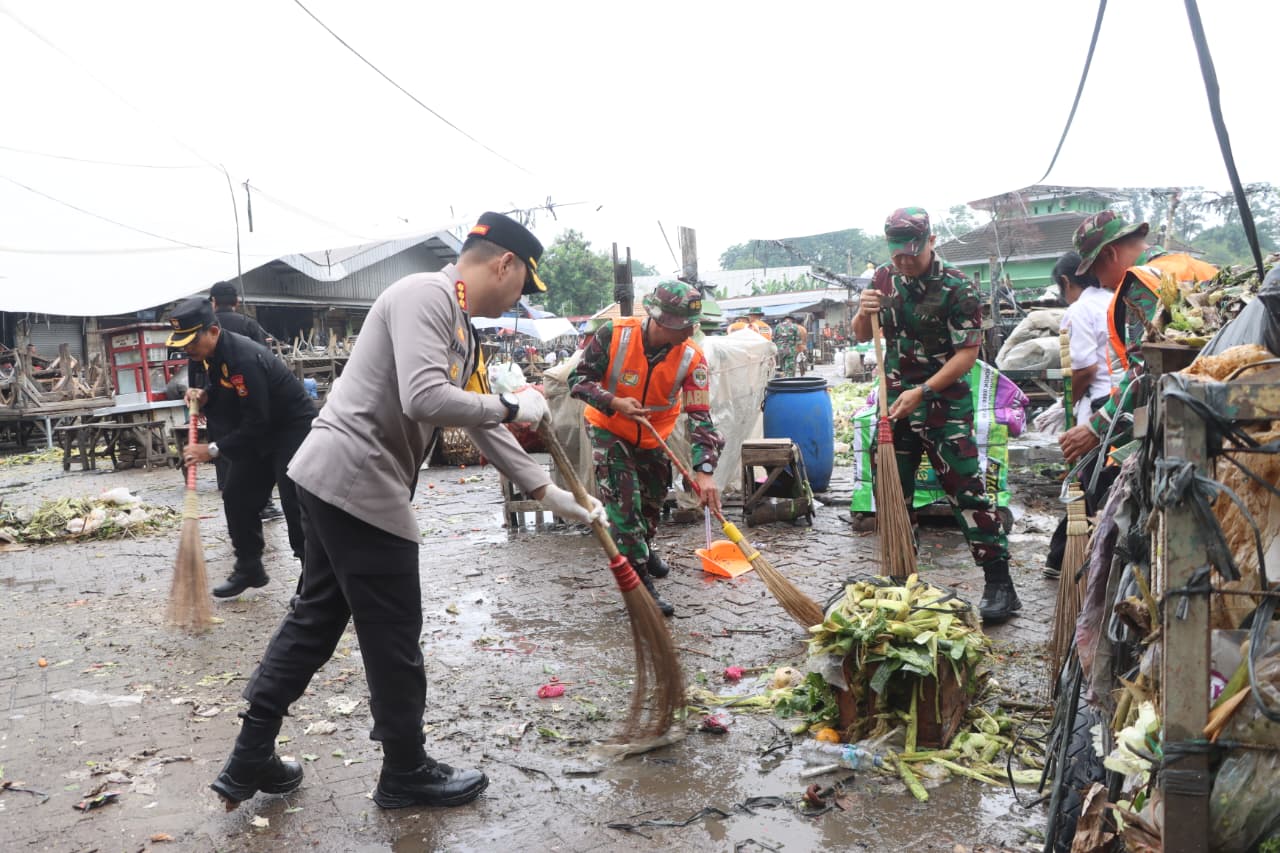 Polres Metro Tangerang Kota bersama TNI, Pemerintah Kota Tangerang, serta unsur potensi masyarakat melaksanakan Apel Kurvey Bersama dalam rangka kegiatan bersih-bersih Pasar Babakan, Minggu (8/2/2026) pagi.